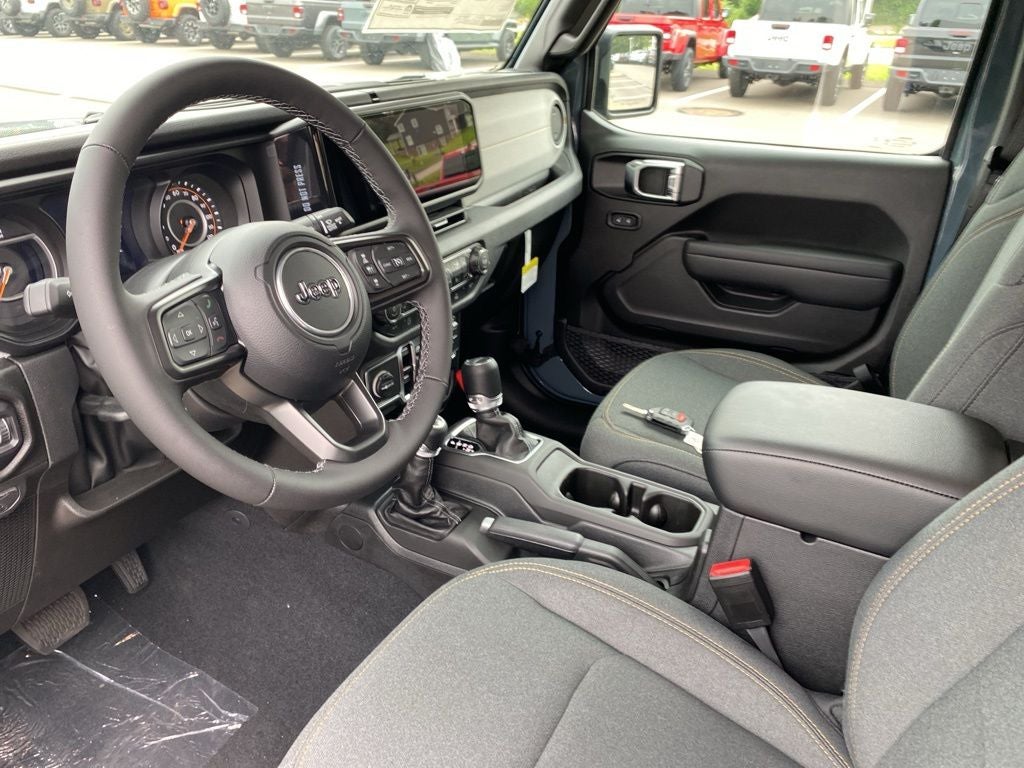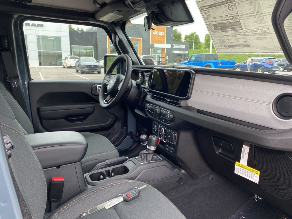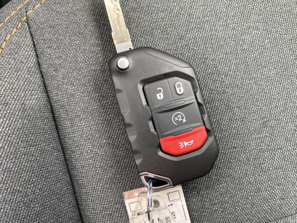 Convenience Group (Corning Gorilla Glass, Daytime Running Lamp System, Emergency/Assistance Call, Front Door Locks 2-Door Passive Entry, Heated Front Seats, Heated Steering Wheel, Remote Start System, and Universal Garage Door Opener), LED Headlamp & Fog Lamp Group (Daytime Running Lamps LED Accents, Front LED Fog Lamps, and LED Premium Reflector Headlamps), Quick Order Package 24S Sport S (Advanced Brake Assist, Automatic Headlamps, Deep Tint Sunscreen Windows, Enhanced Adaptive Cruise Control, Full Speed Forward Collision Warning Plus, Normal Duty Plus Suspension, Power Heated Mirrors, Premium Wrapped Steering Wheel, Security Alarm, Sun Visors w/Illuminated Vanity Mirrors, and Wheels: 17 x 7.5 Gray), Trailer Tow & Aux Switch Group (Auxiliary Switches, Class IV Receiver Hitch, Heavy-Duty Engine Cooling, and Trailer Hitch Zoom), 110 MPH Vehicle Max Speed Calibration, 12.3 Touchscreen Display, 3.73 Rear Axle Ratio, 4-Wheel Disc Brakes, 4G LTE Wi-Fi Hot Spot, 8 Speakers, ABS brakes, Air Conditioning, Alexa Built-In, AM/FM radio: SiriusXM, Apple CarPlay, Apple CarPlay/Android Auto, Black 3-Piece Hard Top, Brake assist, Cloth Low-Back Bucket Seats, Compass, Connectivity - US/Canada, Delay-off headlights, Driver door bin, Driver vanity mirror, Dual front impact airbags, Dual front side impact airbags, Electronic Stability Control, Freedom Panel Storage Bag, Front anti-roll bar, Front Bucket Seats, Front Center Armrest w/Storage, Front fog lights, Front reading lights, Google Android Auto, Illuminated entry, Integrated roll-over protection, Jeep Trail Rated Kit, Low tire pressure warning, Manufacturer's Statement of Origin, MOPAR All-Weather Slush Mats, MOPAR Spray In Bedliner, Normal Duty Suspension, Occupant sensing airbag, Outside temperature display, Overhead airbag, Panic alarm, ParkView Rear Back-Up Camera, Passenger door bin, Passenger vanity mirror, Power steering, Power windows, Radio data system, Radio: Uconnect 5 w/12.3 Display, Rear anti-roll bar, Rear reading lights, Rear Sliding Window, Rear Window Defroster, Remote keyless entry, Speed control, Split folding rear seat, Steering wheel mounted audio controls, Tachometer, Telescoping steering wheel, Tilt steering wheel, Traction control, Trip computer, USB Host Flip, Variably intermittent wipers, Voltmeter, and Wheels: 17 x 7.5 Black Steel Styled. Price includes: $2000 - 2025 National Select Inventory Bonus Cash w/ 3FV . Exp. 02/02/2026 $2250 - 2025 National Retail Bonus Cash . Exp. 02/02/2026