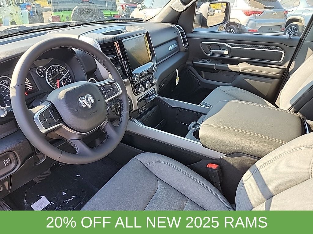Big Horn Level 1 Equipment Group (115V Auxiliary Power Outlet, 2nd Row In Floor Storage Bins, 400W Inverter, Auto Power-Folding Mirrors, Auto-Dimming Exterior Driver Mirror, Auto-Dimming Rear-View Mirror, Black Exterior Mirrors, Black Premium Power Mirrors, Convex Wide-Angle Exterior Mirror Insert, Exterior Mirrors Courtesy Lamps, Exterior Mirrors w/Heating Element, Exterior Mirrors w/Supplemental Signals, Glove Box Lamp, Heated Front Seats, Heated Steering Wheel, Leather Wrapped Steering Wheel, Power 2-Way Driver Lumbar Adjust, Power Adjust 8-Way Driver Seat, Power Adjustable Pedals, Rear Power Sliding Window, Rear Window Defroster, Steering Wheel Mounted Audio Controls, Sun Visors w/Illuminated Vanity Mirrors, and Universal Garage Door Opener), Quick Order Package 23Z Big Horn (Big Horn Badge), 3 Rear Seat Head Restraints, 3.21 Rear Axle Ratio, 4 Way Front Headrests, 4-Wheel Disc Brakes, 4G LTE Wi-Fi Hot Spot, 6 Speakers, ABS brakes, Air Conditioning, Alloy wheels, AM/FM radio, Apple CarPlay/Android Auto, Auto High-beam Headlights, Brake assist, Bumpers: chrome, Cloth Bench Seat, Compass, Connectivity - US/Canada, Delay-off headlights, Driver door bin, Dual front impact airbags, Dual front side impact airbags, Electronic Stability Control, Front anti-roll bar, Front Center Armrest w/Storage, Front fog lights, Front reading lights, Front Seat Back Map Pockets, Front wheel independent suspension, Fully automatic headlights, GPS Antenna Input, Heated door mirrors, Illuminated entry, Integrated Voice Command w/Bluetooth®, Low tire pressure warning, Manual Adjust 4-Way Front Passenger Seat, Manual Folding Exterior Mirrors, MOPAR Front & Rear Rubber Floor Mats, Occupant sensing airbag, Outside temperature display, Overhead airbag, Overhead console, Panic alarm, ParkView Rear Back-Up Camera, Passenger door bin, Passenger vanity mirror, Power door mirrors, Power steering, Power windows, Radio data system, Radio: Uconnect 5 W w/8.4 Display, RAM Grille Badge - Chrome, Rear 60/40 Folding Seat, Rear anti-roll bar, Rear seat center armrest, Rear step bumper, Remote keyless entry, Speed control, Split folding rear seat, Supplier Part Tracking (J-1), Tachometer, Telescoping steering wheel, Tilt steering wheel, Traction control, Trip computer, USB Host Flip, Variably intermittent wipers, Voltmeter, and Wheels: 18 x 8 Cast-Aluminum Painted. Price includes: $2000 - 2025 National Select Inventory Bonus Cash w/ 3FV . Exp. 02/02/2026