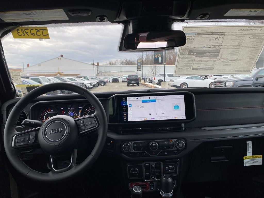 41 2026 Jeep Gladiator Rubicon 4WD 8-Speed Automatic 3.6L V6 24V VVT 110 Mph Vehicle Max Speed Calibration, 12.3 Touchscreen Display, 4-Wheel Disc Brakes, 4.10 Rear Axle Ratio, 4G LTE Wi-Fi Hot Spot, 8 Speakers, ABS brakes, Air Conditioning, Alexa Built-in, Alloy wheels, Alpine Premium Audio System, AM/FM radio: SiriusXM with 360L, Apple CarPlay, Apple CarPlay/Android Auto, Automatic temperature control, Black 3-Piece Hard Top, Brake assist, Cloth Low-Back Bucket Seats, Compass, Connectivity - US/Canada, Convenience Group, Delay-off headlights, Driver door bin, Driver vanity mirror, Dual front impact airbags, Dual front side impact airbags, Electronic Stability Control, Emergency communication system: Jeep Connect, Freedom Panel Storage Bag, Front anti-roll bar, Front Bucket Seats, Front Center Armrest w/Storage, Front dual zone A/C, Front fog lights, Front License Plate Bracket, Front reading lights, Fully automatic headlights, Google Android Auto, Heated door mirrors, Heated Front Seats, Heated Steering Wheel, Illuminated entry, Integrated roll-over protection, Low tire pressure warning, MOPAR All-Weather Slush Mats, MOPAR Plastic Door Sill Guards, MOPAR Spray in Bedliner, MyFlexCare Service Plan, Occupant sensing airbag, Outside temperature display, Overhead airbag, Panic alarm, Passenger door bin, Passenger vanity mirror, Performance Suspension, Power Dome Dual Vented Hood, Power door mirrors, Power steering, Power windows, Quick Order Package 24R Rubicon, Radio data system, Radio: Uconnect 5 with 12.3 Display, Rear anti-roll bar, Rear reading lights, Rear Sliding Window, Rear Window Defroster, Remote keyless entry, Remote Start System, Security system, Speed control, Split folding rear seat, Steel Power Dome Hood Package, Steering wheel mounted audio controls, Tachometer, Telescoping steering wheel, Tilt steering wheel, Traction control, Trip computer, Universal Garage Door Opener, USB Host Flip, Variably intermittent wipers, Voltmeter, Wheels: 17 x 7.5 Machined/Painted Black.