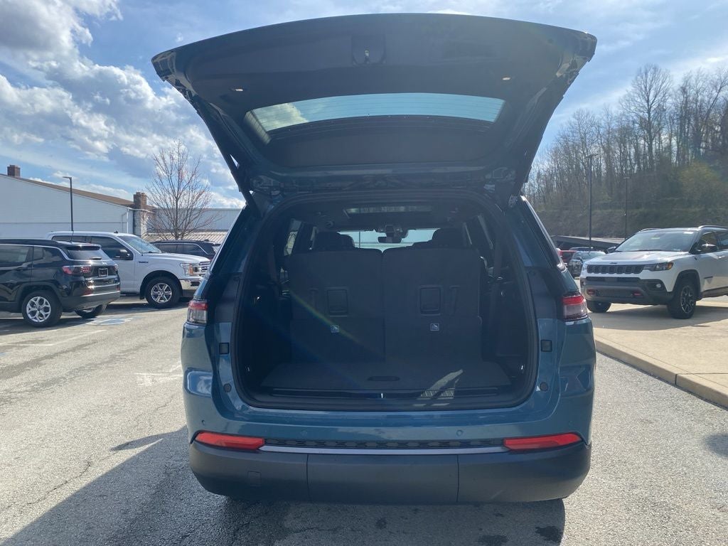 Steel Blue 2026 Jeep Grand Cherokee L Limited 4WD 8-Speed Automatic 2.0L Hurricane 4 Turbo with ESS 10 Speakers, 3.70 Rear Axle Ratio, 3rd row seats: split-bench, 4-Wheel Disc Brakes, 4G LTE Wi-Fi Hot Spot, 7 and 4 Pin Wiring Harness, ABS brakes, Active Noise Control System, Air Conditioning, Alloy wheels, AM/FM radio: SiriusXM with 360L, Anti-whiplash front head restraints, Apple CarPlay, AppLink/Apple CarPlay and Android Auto, Audio memory, Auto High-beam Headlights, Automatic temperature control, Brake assist, Bumpers: body-color, Capri Leatherette Seats, Class IV Receiver Hitch, Compass, Connectivity - US/Canada, Delay-off headlights, Delete Limited Badge, Disassociated Touchscreen Display, Driver door bin, Driver vanity mirror, Dual front impact airbags, Dual front side impact airbags, Dual-Pane Panoramic Sunroof, Electronic Stability Control, Emergency communication system, Exterior Accents Dark Neutral Metallic, For Details, Visit DriveUconnect.com, Four wheel independent suspension, Front anti-roll bar, Front Bucket Seats, Front Center Armrest w/Storage, Front dual zone A/C, Front fog lights, Front License Plate Bracket, Front reading lights, Fully automatic headlights, Garage door transmitter, Global Telematics Box Module (TBM), Gloss Black Exterior Mirrors, Google Android Auto, GPS Antenna Input, Heated door mirrors, Heated Exterior Mirrors, Heated front seats, Heated rear seats, Heated steering wheel, Illuminated entry, Integrated Center Stack Radio, Integrated Voice Command with Bluetooth®, Interior Rear Facing Camera, Knee airbag, Limited Altitude Package, Low tire pressure warning, Manual Fold Seatbacks, Manual Folding Exterior Mirrors, Memory seat, MOPAR Finishing Package, MOPAR Front Splash Guards, MOPAR Paint Protection Film, MOPAR Rear Splash Guards with Jeep Logo, MyFlexCare Service Plan, Navigation System, Normal Duty Suspension, Occupant sensing airbag, Outside temperature display, Overhead airbag, Overhead console, Panic alarm, ParkView Rear Back-Up Camera, Passenger door bin, Passenger vanity mirror, Power door mirrors, Power driver seat, Power Fold Seatbacks, Power Liftgate, Power passenger seat, Power steering, Power windows, Quick Order Package 2BE Limited, Radio data system, Radio: Uconnect 5 Nav with 12.3 Display, Rear air conditioning, Rear anti-roll bar, Rear Load Leveling Suspension, Rear reading lights, Rear window defroster, Rear window wiper, Reclining 3rd row seat, Remote keyless entry, Security system, Speed control, Speed-Sensitive Wipers, Split folding rear seat, Spoiler, Steering wheel mounted audio controls, Tachometer, Telescoping steering wheel, Tilt steering wheel, Traction control, Trailer Hitch Zoom, Trailer Tow Package, Trip computer, Turn signal indicator mirrors, USB Host Flip, Variably intermittent wipers, Voltmeter, Wheels: 18 x 8.0 Polished/Painted Aluminum, Wheels: 20 x 8.5 Gloss Black Painted Aluminum.