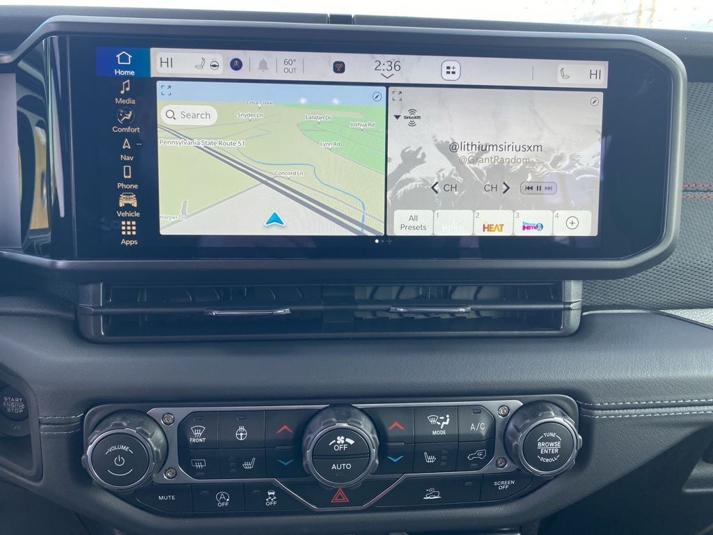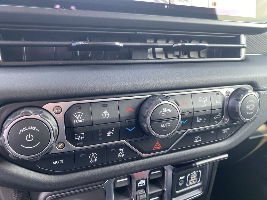 Convenience Group (Heated Front Seats, Heated Steering Wheel, and Universal Garage Door Opener), Quick Order Package 22R Rubicon, Steel Performance Hood Package (Performance Hood), Technology Group (12.3 Touchscreen Display, 4G LTE Wi-Fi Hot Spot, Apple CarPlay, Auto-Dimming Rear-View Mirror, Connected Travel and Traffic Services, Connectivity - US/Canada, For More Info, Call 800-643-2112, Google Android Auto, GPS Navigation, HD Radio, Integrated Center Stack Radio, Integrated Off-Road Camera, Integrated Voice Command with Bluetooth®, Radio: Uconnect 5 Navigation with 12.3 Display, SiriusXM Radio Service, and SiriusXM with 360L), 4-Wheel Disc Brakes, 4.10 Rear Axle Ratio, 8 Speakers, ABS brakes, Air Conditioning, Alloy wheels, Alpine Premium Audio System, AM/FM radio: SiriusXM with 360L, Apple CarPlay/Android Auto, Automatic temperature control, Aux Battery, Auxiliary Switches, Body Color 3-Piece Hard Top, Brake assist, Class II Receiver Hitch, Cloth Low-Back Bucket Seats, Compass, Delay-off headlights, Driver door bin, Driver vanity mirror, Dual front impact airbags, Dual front side impact airbags, Electronic Stability Control, Emergency communication system: Jeep Connect, Freedom Panel Storage Bag, Front anti-roll bar, Front Bucket Seats, Front Center Armrest w/Storage, Front dual zone A/C, Front fog lights, Front reading lights, Fully automatic headlights, Heated door mirrors, Illuminated entry, Integrated roll-over protection, Jeep Trail Rated Kit, Low tire pressure warning, MOPAR All-Weather Floor Mats, Myflexcare Service Plan, No Soft Top, Non-Lock Fuel Cap Without Discriminator, Occupant sensing airbag, Outside temperature display, Overhead airbag, Panic alarm, ParkView Rear Back-Up Camera, Passenger door bin, Passenger vanity mirror, Performance Suspension, Power door mirrors, Power steering, Power windows, Radio data system, Radio: Uconnect 5 with 12.3 Display, Rear anti-roll bar, Rear reading lights, Rear Window Defroster, Rear Window Wiper/Washer, Remote keyless entry, Security system, Speed control, Split folding rear seat, Steering wheel mounted audio controls, Stop-Start Dual Battery System, Tachometer, Telescoping steering wheel, Tilt steering wheel, Traction control, Trip computer, Variably intermittent wipers, Voltmeter, and Wheels: 17 x 7.5 Machined/Painted Black.