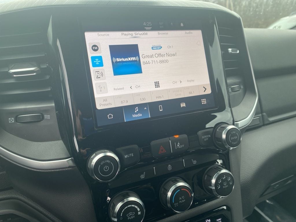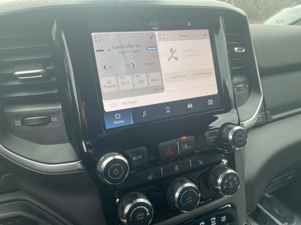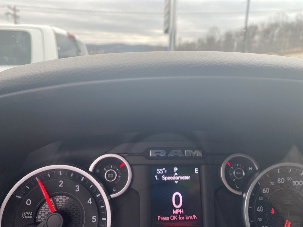 Diamond Black Crystal Pearlcoat 2026 Ram 1500 Big Horn/Lone Star 4WD 8-Speed Automatic 3.0L I6 115V Auxiliary Power Outlet, 2nd Row in Floor Storage Bins, 3 Rear Seat Head Restraints, 4 Way Front Headrests, 4-Wheel Disc Brakes, 400W Inverter, 48V Belt Starter Generator, 4G LTE Wi-Fi Hot Spot, 6 Speakers, ABS brakes, Air Conditioning, Alloy wheels, AM/FM radio, Anti-Spin Differential Rear Axle, Apple CarPlay, Apple CarPlay/Android Auto, Auto High-beam Headlights, Auto Power-Folding Mirrors, Auto-Dimming Exterior Driver Mirror, Auto-Dimming Rear-View Mirror, Bed Utility Group, Big Horn Level 1 Equipment Group, Black Exterior Mirrors, Black Interior Accents, Black Premium Power Mirrors, Body Color Door Handles, Body Color Fender Flares, Body Color Front Bumper, Body Color Rear Bumper with Step Pads, Body Color Tailgate Handle, Brake assist, Bucket Seats, Bumpers: chrome, Center Console Parts Module, Cloth Bucket Seats, Compass, Connectivity - US/Canada, Convex Wide-Angle Exterior Mirror Insert, Delay-off headlights, Deluxe Cloth Bucket Seats, Driver door bin, Dual front impact airbags, Dual front side impact airbags, Electronic Stability Control, Engine Block Heater, Exterior 115V AC Outlet, Exterior Mirrors Courtesy Lamps, Exterior Mirrors with Heating Element, Exterior Mirrors with Supplemental Signals, Front anti-roll bar, Front Bucket Seats, Front Center Armrest w/Storage, Front fog lights, Front License Plate Bracket, Front reading lights, Front Seat Back Map Pockets, Front wheel independent suspension, Full Length Floor Console, Fully automatic headlights, Global Telematics Box Module, Glove Box Lamp, Google Android Auto, GPS Antenna Input, Grille Surround 1 Body Color Texture 1 Black, Heated door mirrors, Heated Front Seats, Heated Steering Wheel, Illuminated entry, Integrated Center Stack Radio, Integrated Voice Command with Bluetooth®, Leather Wrapped Steering Wheel, Low tire pressure warning, Manual Adjust 4-Way Driver Seat, Manual Adjust 4-Way Front Passenger Seat, Manual Folding Exterior Mirrors, Manufacturer's Statement of Origin, MOPAR 4 Adjustable Cargo Tie-Down Hooks, MOPAR Front and Rear Rubber Floor Mats, MOPAR Spray in Bedliner, MyFlexCare Service Plan, Occupant sensing airbag, Outside temperature display, Overhead airbag, Overhead console, Panic alarm, ParkView Rear Back-Up Camera, Passenger door bin, Passenger vanity mirror, Pick-Up Box Lighting, Power 2-Way Driver Lumbar Adjust, Power Adjust 8-Way Driver Seat, Power Adjustable Pedals, Power door mirrors, Power steering, Power windows, Quick Order Package 21Z Big Horn, Radio data system, Radio: Uconnect 5 W with 8.4 Display, RAM Grille Badge - Chrome, Rear 60/40 Folding Seat, Rear anti-roll bar, Rear Center Armrest, Rear Dome with on/Off Switch Lamp, Rear Power Sliding Window, Rear step bumper, Rear Wheelhouse Liners, Rear Window Defroster, Remote keyless entry, SiriusXM Radio Service, SiriusXM Satellite Radio, Speed control, Sport Appearance Package, Steering Wheel Mounted Audio Controls, Sun Visors with Illuminated Vanity Mirrors, Supplier Part Tracking (J-1), Tachometer, Telescoping steering wheel, Tilt steering wheel, Traction control, Trip computer, Universal Garage Door Opener, USB Host Flip, Variably intermittent wipers, Voltmeter. Price includes: $3500 - 2026 National Retail Bonus Cash . Exp. 04/30/2026 $500 - 2026 National 2026 First Responder Bonus Cash . Exp. 01/04/2027