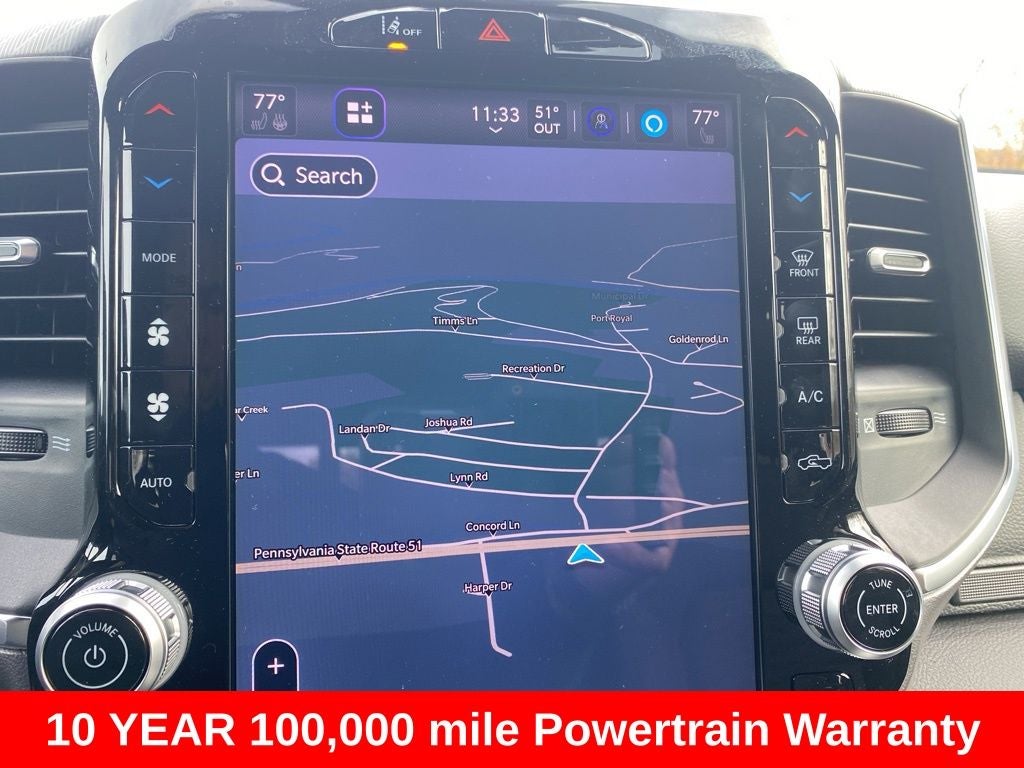 Big Horn Level 2 Equipment Group (115V Auxiliary Power Outlet, 115V Auxiliary Rear Power Outlet, 12 Touchscreen Display, 2nd Row in Floor Storage Bins, 3 Rear Seat Head Restraints, 4 Way Front Headrests, 400W Inverter, 4G LTE Wi-Fi Hot Spot, 9 Amplified Speakers with Subwoofer, Air Conditioning ATC with Dual Zone Control, Apple CarPlay, Auto Power-Folding Mirrors, Auto-Dimming Exterior Driver Mirror, Auto-Dimming Rear-View Mirror, Black Exterior Mirrors, Black Premium Power Mirrors, Body Color Fender Flares, Bucket Seats, Center Console Parts Module, Cluster 7.0 TFT Color Display, Configurable Drive Mode, Connected Travel and Traffic Services, Connectivity - US/Canada, Convex Wide-Angle Exterior Mirror Insert, Deluxe Cloth Bucket Seats, Disassociated Touchscreen Display, Exterior Mirrors Courtesy Lamps, Exterior Mirrors with Heating Element, Exterior Mirrors with Supplemental Signals, Front Seat Back Map Pockets, Full Length Floor Console, Global Telematics Box Module, Glove Box Lamp, Google Android Auto, GPS Antenna Input, GPS Navigation, HD Radio, Heated Front Seats, Heated Steering Wheel, Integrated Center Stack Radio, Integrated Voice Command with Bluetooth®, Leather Wrapped Steering Wheel, LED Dome Lamp with on/Off Switch, LED Footwell Lighting, Manual Adjust 4-Way Front Passenger Seat, Media Hub with 2 Charge Only USBs, Overhead LED Lamps, Power 2-Way Driver Lumbar Adjust, Power Adjust 8-Way Driver Seat, Power Adjustable Pedals, Premium Overhead Console, Radio: Uconnect 5 Navigation with 12.0 Display, Rear 60/40 Folding Seat, Rear Center Armrest, Rear Power Sliding Window, Rear Window Defroster, Remote Tailgate Release, Security Alarm, SiriusXM Radio Service, SiriusXM with 360L, Steering Wheel Mounted Audio Controls, Sun Visors with Illuminated Vanity Mirrors, Universal Garage Door Opener, and USB Host Flip), Night Edition (Accent Color Door Handles, Accent Color Premium Power Mirrors, Accent Color Tailgate Handle, Anti-Spin Differential Rear Axle, Black Exterior Truck Badging, Black Headlamp Bezels, Black Interior Accents, Black Painted Exterior Mirrors Caps, Black Tail Lamp Bezels, Body Color Front Bumper, Body Color Rear Bumper with Step Pads, Dual Exhaust with Black Tips, Grille Black Surround Black Mesh, RAM Grille Badge - Black, and Wheels: 20 x 9.0 Aluminum Painted Clad), Quick Order Package 21Z Big Horn, 4-Wheel Disc Brakes, 48V Belt Starter Generator, 6 Speakers, ABS brakes, Air Conditioning, Alloy wheels, AM/FM radio, Apple CarPlay/Android Auto, Auto High-beam Headlights, Brake assist, Bumpers: chrome, Cloth Bucket Seats, Cluster 12 TFT Color Display, Compass, Delay-off headlights, Dome Dual LED Reading Lamp, Driver door bin, Dual front impact airbags, Dual front side impact airbags, Dual-Pane Panoramic Sunroof, Electronic Stability Control, Exterior 115V AC Outlet, Front anti-roll bar, Front Bucket Seats, Front Center Armrest w/Storage, Front fog lights, Front License Plate Bracket, Front reading lights, Front wheel independent suspension, Fully automatic headlights, Heated door mirrors, Illuminated entry, Low tire pressure warning, Manual Adjust 4-Way Driver Seat, Manual Folding Exterior Mirrors, Occupant sensing airbag, Outside temperature display, Overhead airbag, Overhead console, Panic alarm, ParkView Rear Back-Up Camera, Passenger door bin, Passenger vanity mirror, Power door mirrors, Power steering, Power windows, Radio data system, Radio: Uconnect 5 W with 8.4 Display, RAM Grille Badge - Chrome, RamBox Cargo Management System, Rear anti-roll bar, Rear step bumper, Rear Wheelhouse Liners, Remote keyless entry, Speed control, Supplier Part Tracking (J-1), Tachometer, Telescoping steering wheel, Tilt steering wheel, Traction control, T Price includes: $2000 - 2026 National Select Inventory Bonus Cash. Exp. 02/02/2026 $3500 - 2026 National Retail Consumer Cash . Exp