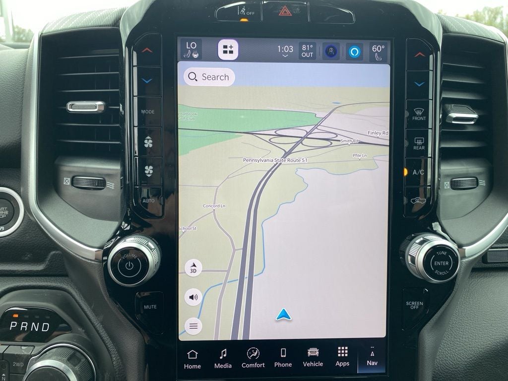 Big Horn Level 2 Equipment Group (115V Auxiliary Power Outlet, 115V Auxiliary Rear Power Outlet, 12 Touchscreen Display, 2nd Row in Floor Storage Bins, 3 Rear Seat Head Restraints, 4 Way Front Headrests, 400W Inverter, 4G LTE Wi-Fi Hot Spot, 9 Amplified Speakers with Subwoofer, Air Conditioning ATC with Dual Zone Control, Apple CarPlay, Auto Power-Folding Mirrors, Auto-Dimming Exterior Driver Mirror, Auto-Dimming Rear-View Mirror, Black Exterior Mirrors, Black Premium Power Mirrors, Body Color Fender Flares, Bucket Seats, Center Console Parts Module, Cluster 7.0 TFT Color Display, Configurable Drive Mode, Connected Travel and Traffic Services, Connectivity - US/Canada, Convex Wide-Angle Exterior Mirror Insert, Deluxe Cloth Bucket Seats, Disassociated Touchscreen Display, Exterior Mirrors Courtesy Lamps, Exterior Mirrors with Heating Element, Exterior Mirrors with Supplemental Signals, Front Seat Back Map Pockets, Full Length Floor Console, Global Telematics Box Module, Glove Box Lamp, Google Android Auto, GPS Antenna Input, GPS Navigation, HD Radio, Heated Front Seats, Heated Steering Wheel, Integrated Center Stack Radio, Integrated Voice Command with Bluetooth®, Leather Wrapped Steering Wheel, LED Dome Lamp with on/Off Switch, LED Footwell Lighting, Manual Adjust 4-Way Front Passenger Seat, Media Hub with 2 Charge Only USBs, Overhead LED Lamps, Power 2-Way Driver Lumbar Adjust, Power Adjust 8-Way Driver Seat, Power Adjustable Pedals, Premium Overhead Console, Radio: Uconnect 5 Navigation with 12.0 Display, Rear 60/40 Folding Seat, Rear Center Armrest, Rear Power Sliding Window, Rear Window Defroster, Remote Tailgate Release, Security Alarm, SiriusXM Radio Service, SiriusXM with 360L, Steering Wheel Mounted Audio Controls, Sun Visors with Illuminated Vanity Mirrors, Universal Garage Door Opener, and USB Host Flip), Night Edition (Accent Color Door Handles, Accent Color Premium Power Mirrors, Accent Color Tailgate Handle, Anti-Spin Differential Rear Axle, Black Exterior Truck Badging, Black Headlamp Bezels, Black Interior Accents, Black Painted Exterior Mirrors Caps, Black Tail Lamp Bezels, Body Color Front Bumper, Body Color Rear Bumper with Step Pads, Dual Exhaust with Black Tips, Grille Black Surround Black Mesh, RAM Grille Badge - Black, and Wheels: 20 x 9.0 Aluminum Painted Clad), Quick Order Package 21Z Big Horn, 4-Wheel Disc Brakes, 6 Speakers, ABS brakes, Air Conditioning, Alloy wheels, AM/FM radio, Apple CarPlay/Android Auto, Auto High-beam Headlights, Brake assist, Bumpers: chrome, Cloth Bucket Seats, Compass, Delay-off headlights, Driver door bin, Dual front impact airbags, Dual front side impact airbags, Electronic Stability Control, Front anti-roll bar, Front Bucket Seats, Front Center Armrest w/Storage, Front fog lights, Front reading lights, Front wheel independent suspension, Fully automatic headlights, Heated door mirrors, Illuminated entry, Low tire pressure warning, Manual Adjust 4-Way Driver Seat, Manual Folding Exterior Mirrors, MOPAR Front and Rear Rubber Floor Mats, MyFlexCare Service Plan, Occupant sensing airbag, Outside temperature display, Overhead airbag, Overhead console, Panic alarm, ParkView Rear Back-Up Camera, Passenger door bin, Passenger vanity mirror, Power door mirrors, Power steering, Power windows, Radio data system, Radio: Uconnect 5 W with 8.4 Display, RAM Grille Badge - Chrome, Rear anti-roll bar, Rear step bumper, Remote keyless entry, Speed control, Tachometer, Telescoping steering wheel, Tilt steering wheel, Traction control, Trip computer, Variably intermittent wipers, and Voltmeter. Price includes: $3500 - 2026 National Retail Bonus Cash . Exp. 04/30/2026 $500 - 2026 National 2026 Military Bonus Cash . Exp. 01/04/2027