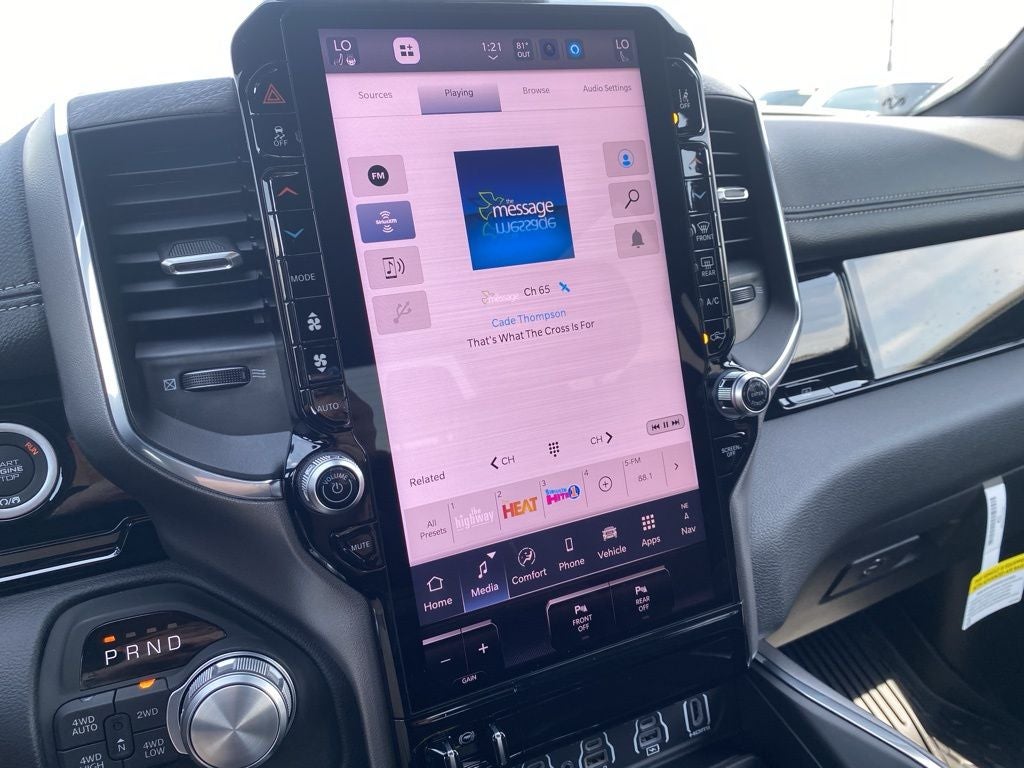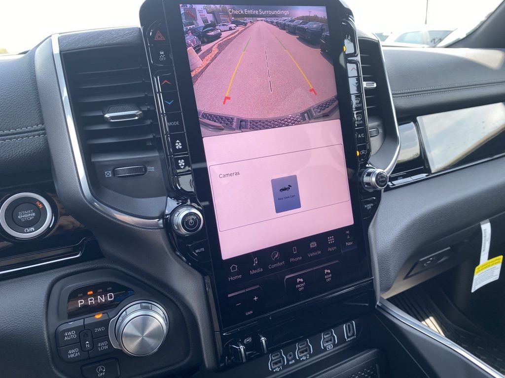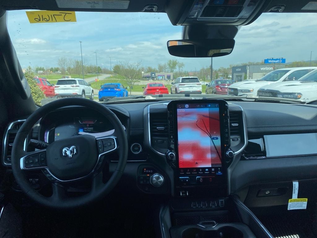 Canyon Lake 2026 Ram 1500 Laramie 4WD 8-Speed Automatic HEMI 5.7L V8 Multi Displacement VVT eTorque 10 Speakers, 14.4 Touchscreen Display, 4-Wheel Disc Brakes, 4G LTE Wi-Fi Hot Spot, ABS brakes, Accent Color Door Handles, Accent Color Premium Power Mirrors, Accent Color Tailgate Handle, Active Noise Control System, Adjustable pedals, Air Conditioning, Alloy wheels, AM/FM radio: SiriusXM with 360L, Anti-Spin Differential Rear Axle, Apple CarPlay/Android Auto, Audio memory, Auto High-beam Headlights, Auto Power-Folding Mirrors, Auto-dimming door mirrors, Auto-Dimming Exterior Driver Mirror, Auto-dimming Rear-View mirror, Automatic temperature control, Bed Utility Group, Black Exterior Truck Badging, Black Headlamp Bezels, Black Interior Accents, Black Painted Exterior Mirrors Caps, Black Tail Lamp Bezels, Body Color Front Bumper, Body Color Rear Bumper with Step Pads, Brake assist, Bumpers: chrome, Chrome Exterior Mirrors, Cluster 12 TFT Color Display, Compass, Connected Travel and Traffic Services, Connectivity - US/Canada, Convex Wide-Angle Exterior Mirror Insert, Delay-off headlights, Driver door bin, Driver vanity mirror, Dual Exhaust with Black Tips, Dual front impact airbags, Dual front side impact airbags, Electronic Stability Control, Exterior 115V AC Outlet, Exterior Mirrors Approach Lamps, Exterior Mirrors Courtesy Lamps, Exterior Mirrors with Heating Element, Exterior Mirrors with Memory, Exterior Mirrors with Supplemental Signals, Front anti-roll bar, Front Bucket Seats, Front Center Armrest w/Storage, Front dual zone A/C, Front fog lights, Front License Plate Bracket, Front Passenger Interactive Display, Front reading lights, Front wheel independent suspension, Fully automatic headlights, Garage door transmitter, GPS Navigation, Grille Surround 3 Black Texture 2 Black, Harman/Kardon 19 Speaker Premium Sound, Heated door mirrors, Heated front seats, Heated rear seats, Heated steering wheel, Illuminated entry, Integrated Center Stack Radio, Integrated Voice Command with Bluetooth®, Laramie Level 2 Equipment Group, Leather steering wheel, Leather Trimmed Bucket Seats, Low tire pressure warning, Manufacturer's Statement of Origin, Memory seat, MOPAR 4 Adjustable Cargo Tie-Down Hooks, MOPAR Front and Rear Rubber Floor Mats, MOPAR Spray in Bedliner, MyFlexCare Service Plan, Navigation System, Night Edition, Occupant sensing airbag, Off-Road Information Pages, Outside temperature display, Overhead airbag, Overhead console, Panic alarm, ParkView Rear Back-Up Camera, Passenger door bin, Passenger vanity mirror, Pedal memory, Pirelli Brand Tires, Power door mirrors, Power driver seat, Power passenger seat, Power steering, Power Tailgate, Power windows, Proximity Approach/Departure Lamps, Quick Order Package 27H Laramie, Radio data system, Radio: Uconnect 5 Nav with 14.4 Display, Radio: Uconnect 5 Navigation with 12.0 Display, Rain Sensitive Windshield Wipers, RAM Grille Badge - Black, RAM Grille Badge - Chrome, Rear anti-roll bar, Rear reading lights, Rear seat center armrest, Rear step bumper, Rear Wheelhouse Liners, Remote keyless entry, Security system, SiriusXM Radio Service, SiriusXM with 360L, Speed control, Split folding rear seat, Sport Performance Hood, Steering wheel mounted audio controls, Tachometer, Telescoping steering wheel, Tilt steering wheel, Traction control, Trailer Brake Control, Trip computer, Turn signal indicator mirrors, USB Host Flip, Variably intermittent wipers, Ventilated front seats, Voltmeter, Wheels: 20 x 9 Premium Paint/Polish, Wheels: 22 x 9 Forged Aluminum.