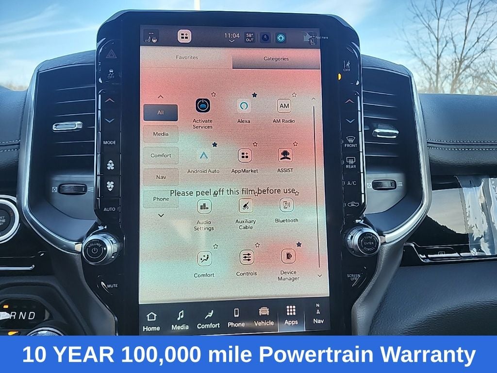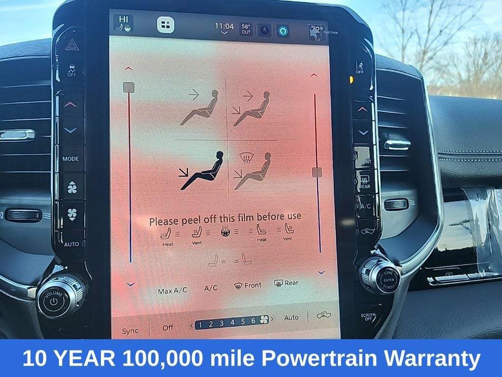 Laramie Level 2 Equipment Group (14.4 Touchscreen Display, 4G LTE Wi-Fi Hot Spot, Apple CarPlay, Cluster 12 TFT Color Display, Connected Travel and Traffic Services, Connectivity - US/Canada, Disassociated Touchscreen Display, Front Passenger Interactive Display, Global Telematics Box Module, Google Android Auto, GPS Antenna Input, GPS Navigation, Harman/Kardon 19 Speaker Premium Sound, HD Radio, Integrated Center Stack Radio, Integrated Voice Command with Bluetooth®, Power Tailgate, Radio: Uconnect 5 Nav with 14.4 Display, Rain Sensitive Windshield Wipers, SiriusXM Radio Service, SiriusXM with 360L, and USB Host Flip), Quick Order Package 21H Laramie, Towing Technology Group (Trailer Hitch Line-Up Assist), Trailer Tow Group (Trailer Brake Control, Trailer Reverse Steering Control, and Trailer Tire Pressure Monitoring System), 10 Speakers, 4-Wheel Disc Brakes, ABS brakes, Air Conditioning, Alloy wheels, AM/FM radio: SiriusXM with 360L, Apple CarPlay/Android Auto, Audio memory, Auto High-beam Headlights, Auto Power-Folding Mirrors, Auto-dimming door mirrors, Auto-Dimming Exterior Driver Mirror, Auto-Dimming Exterior Passenger Mirror, Auto-dimming Rear-View mirror, Automatic temperature control, Brake assist, Bumpers: chrome, Chrome Exterior Mirrors, Chrome Power-Fold Trailer Tow Mirrors, Compass, Convex Wide-Angle Exterior Mirror Insert, Delay-off headlights, Driver door bin, Driver vanity mirror, Dual front impact airbags, Dual front side impact airbags, Electronic Stability Control, Exterior Mirrors Courtesy Lamps, Exterior Mirrors with Heating Element, Exterior Mirrors with Memory, Exterior Mirrors with Supplemental Signals, Forward and Reverse Utility Lights, Front anti-roll bar, Front Bucket Seats, Front Center Armrest w/Storage, Front dual zone A/C, Front fog lights, Front reading lights, Front wheel independent suspension, Fully automatic headlights, Garage door transmitter, Heated door mirrors, Heated front seats, Heated rear seats, Heated steering wheel, Illuminated entry, Leather steering wheel, Leather Trimmed Bucket Seats, Low tire pressure warning, Manufacturer's Statement of Origin, Memory seat, Mirror Clearance/Running Lights, MOPAR Front and Rear Rubber Floor Mats, MyFlexCare Service Plan, Navigation System, Occupant sensing airbag, Outside temperature display, Overhead airbag, Overhead console, Panic alarm, ParkView Rear Back-Up Camera, Passenger door bin, Passenger vanity mirror, Power door mirrors, Power driver seat, Power passenger seat, Power steering, Power Telescoping Mirrors, Power windows, Power-Adjustable Convex Aux Mirrors, Radio data system, Radio: Uconnect 5 Navigation with 12.0 Display, RAM Grille Badge - Chrome, Rear anti-roll bar, Rear reading lights, Rear seat center armrest, Rear step bumper, Remote keyless entry, Security system, Speed control, Split folding rear seat, Steering wheel mounted audio controls, Tachometer, Telescoping steering wheel, Tilt steering wheel, Traction control, Trailer Tow Mirrors, Trip computer, Turn signal indicator mirrors, Variably intermittent wipers, Ventilated front seats, Voltmeter, and Wheels: 20 x 9 Premium Paint/Polish. Price includes: $1000 - 2026 National Bonus Cash . Exp. 03/02/2026 $3500 - 2026 National Retail Consumer Cash . Exp. 03/02/2026 $500 - 2026 National 2026 First Responder Bonus Cash . Exp. 01/04/2027
