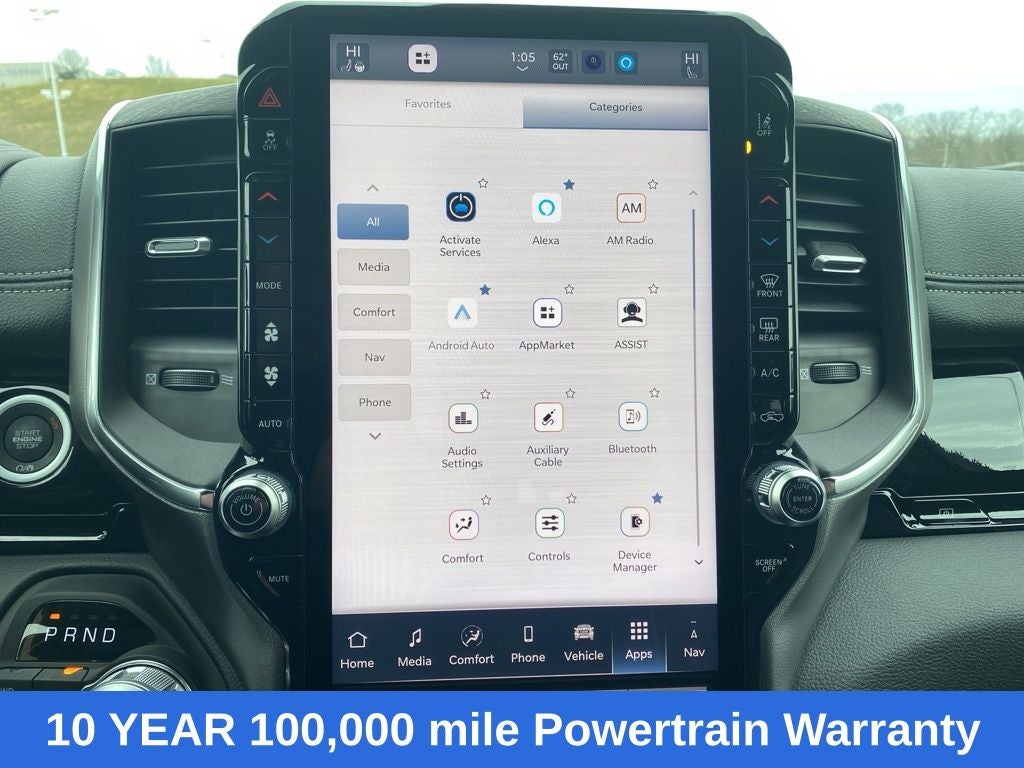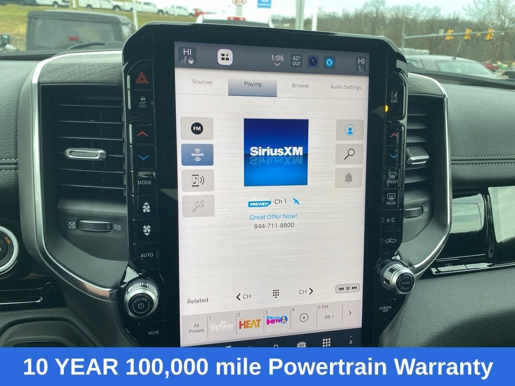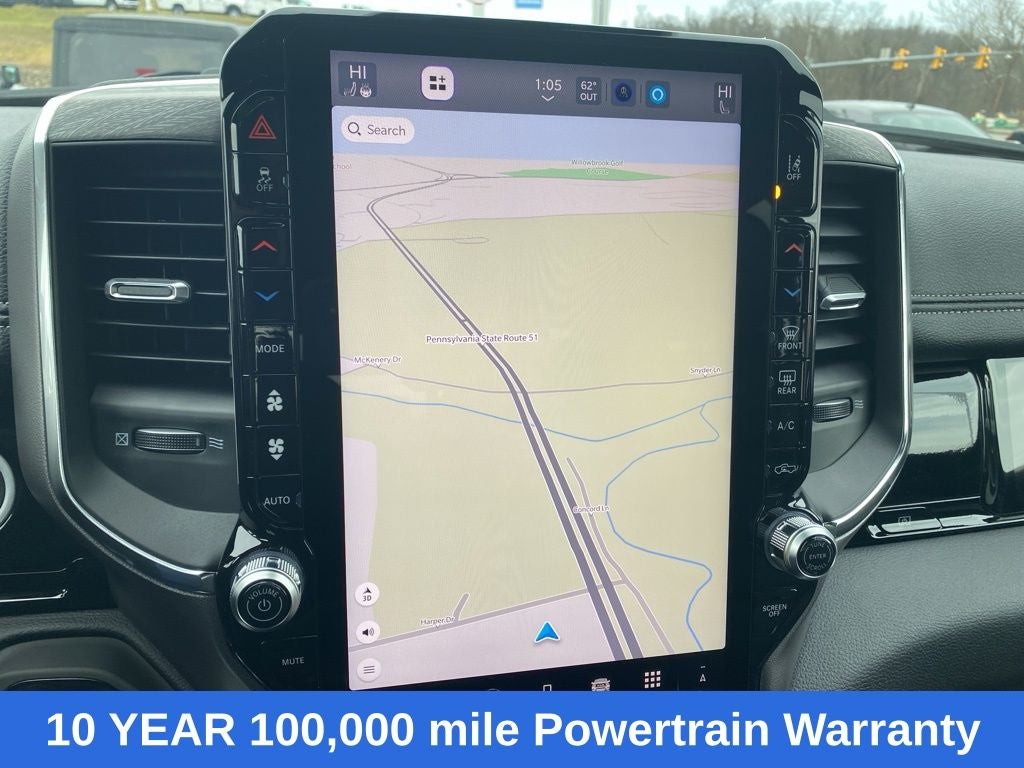 Laramie Level 2 Equipment Group (14.4 Touchscreen Display, 4G LTE Wi-Fi Hot Spot, Apple CarPlay, Cluster 12 TFT Color Display, Connected Travel and Traffic Services, Connectivity - US/Canada, Disassociated Touchscreen Display, Front Passenger Interactive Display, Global Telematics Box Module, Google Android Auto, GPS Antenna Input, GPS Navigation, Harman/Kardon 19 Speaker Premium Sound, HD Radio, Integrated Center Stack Radio, Integrated Voice Command with Bluetooth®, Power Tailgate, Radio: Uconnect 5 Nav with 14.4 Display, Rain Sensitive Windshield Wipers, SiriusXM Radio Service, SiriusXM with 360L, and USB Host Flip), Quick Order Package 21H Laramie, Towing Technology Group (Trailer Hitch Line-Up Assist), Trailer Tow Group (Trailer Brake Control, Trailer Reverse Steering Control, and Trailer Tire Pressure Monitoring System), 10 Speakers, 4-Wheel Disc Brakes, ABS brakes, Adjustable pedals, Air Conditioning, Alloy wheels, AM/FM radio: SiriusXM with 360L, Apple CarPlay/Android Auto, Audio memory, Auto High-beam Headlights, Auto Power-Folding Mirrors, Auto-dimming door mirrors, Auto-Dimming Exterior Driver Mirror, Auto-Dimming Exterior Passenger Mirror, Auto-dimming Rear-View mirror, Automatic temperature control, Brake assist, Bumpers: chrome, Chrome Exterior Mirrors, Chrome Power-Fold Trailer Tow Mirrors, Compass, Convex Wide-Angle Exterior Mirror Insert, Delay-off headlights, Driver door bin, Driver vanity mirror, Dual front impact airbags, Dual front side impact airbags, Electronic Stability Control, Exterior Mirrors Courtesy Lamps, Exterior Mirrors with Heating Element, Exterior Mirrors with Memory, Exterior Mirrors with Supplemental Signals, Forward and Reverse Utility Lights, Front anti-roll bar, Front Bucket Seats, Front Center Armrest w/Storage, Front dual zone A/C, Front fog lights, Front reading lights, Front wheel independent suspension, Fully automatic headlights, Garage door transmitter, Heated door mirrors, Heated front seats, Heated rear seats, Heated steering wheel, Illuminated entry, Leather steering wheel, Leather Trimmed Bucket Seats, Low tire pressure warning, Manufacturer's Statement of Origin, Memory seat, Mirror Clearance/Running Lights, MOPAR Front and Rear Rubber Floor Mats, MyFlexCare Service Plan, Navigation System, Occupant sensing airbag, Outside temperature display, Overhead airbag, Overhead console, Panic alarm, ParkView Rear Back-Up Camera, Passenger door bin, Passenger vanity mirror, Pedal memory, Power door mirrors, Power driver seat, Power passenger seat, Power steering, Power Telescoping Mirrors, Power windows, Power-Adjustable Convex Aux Mirrors, Radio data system, Radio: Uconnect 5 Navigation with 12.0 Display, RAM Grille Badge - Chrome, Rear anti-roll bar, Rear reading lights, Rear seat center armrest, Rear step bumper, Remote keyless entry, Security system, Speed control, Split folding rear seat, Steering wheel mounted audio controls, Tachometer, Telescoping steering wheel, Tilt steering wheel, Traction control, Trailer Tow Mirrors, Trip computer, Turn signal indicator mirrors, Variably intermittent wipers, Ventilated front seats, Voltmeter, and Wheels: 20 x 9 Premium Paint/Polish. Price includes: $1000 - 2026 National Bonus Cash . Exp. 03/02/2026 $3500 - 2026 National Retail Consumer Cash . Exp. 03/02/2026 $500 - 2026 National 2026 Military Bonus Cash . Exp. 01/04/2027