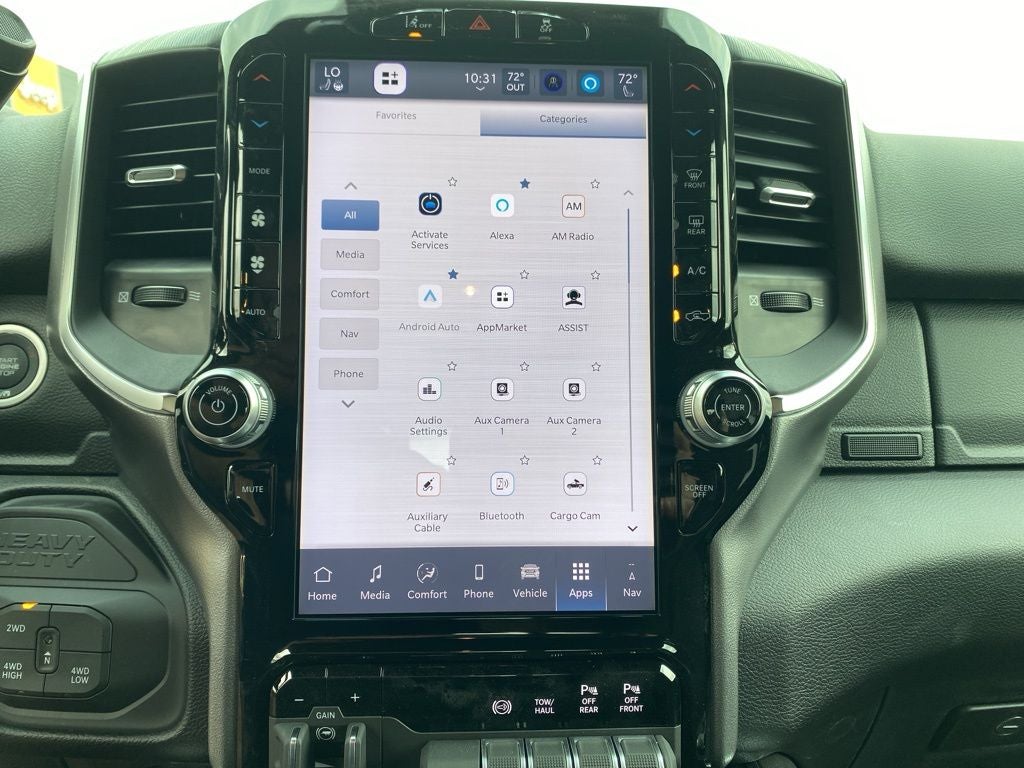 Big Horn Level 2 Plus Equipment Group (115-Volt Auxiliary Front Power Outlet, 115V Auxiliary Rear Power Outlet, 12 Touchscreen Display, 2 Way Rear Headrest Seat, 2nd Row in Floor Storage Bins, 4 Way Front Headrests, 400W Inverter, 4G LTE Wi-Fi Hot Spot, 9 Alpine Speakers with Subwoofer, Active Lane Management System, Adaptive Steering System, Air Conditioning ATC with Dual Zone Control, Alexa Built-in, Anti-Spin Differential Rear Axle, Apple CarPlay, Auto High Beam Headlamp Control, Auto Power-Folding Mirrors, Auto-Dimming Rear-View Mirror, Black Exterior Mirrors, Blind Spot and Cross Path Detection, Bucket Seats, Center Stop Lamp with Cargo View Camera, Cluster 7.0 TFT Color Display, Connected Travel and Traffic Services, Connectivity - US/Canada, Dampened Tailgate, Disassociated Touchscreen Display, Drowsy Driver Detection, Dual Glove Boxes, Dual Wireless Charging Pad, Emergency Vehicle Alert System (EVAS), Exterior 115V AC Outlet, Exterior Mirrors Courtesy Lamps, Exterior Mirrors with Heating Element, Exterior Mirrors with Supplemental Signals, Foam Bottle Insert (door Trim Panel), Folding Flat Load Floor Storage, Footwell Courtesy Lamp, For Details, Visit DriveUconnect.com, For More Info, Call 800-643-2112, Forward and Reverse Utility Lights, Front Seat Back Map Pockets, Full Length Upgraded Floor Console, Global Telematics Box Module, Glove Box Lamp, Google Android Auto, GPS Antenna Input, GPS Navigation, HD Radio, Heated Front Seats, Heated Steering Wheel, Integrated Voice Command with Bluetooth®, LED Bed Lighting, LED Tail Lamps, Locking Lower Glove Box, Luxury Steering Wheel, Manual Adjust 4-Way Front Passenger Seat, Media Hub with 2 Charge Only USBs, Mirror Running Lights, MOPAR Deployable Bed Step, MOPAR Spray in Bedliner, MOPAR Trailer Camera Wiring with No Camera, Off-Road Info Pages, Power 2-Way Driver Lumbar Adjust, Power Adjust 8-Way Driver Seat, Power Adjust Mirrors, Power Adjustable Pedals, Power Heated Folding Telescopic Mirrors, Power Telescoping Mirrors, Power-Adjustable Convex Aux Mirrors, Premium Cloth Bucket Seats, Radio: Uconnect 5 Navigation with 12.0 Display, Rain Sensitive Windshield Wipers, Rear 60/40 Folding Seat, Rear Dome with on/Off Switch Lamp, Rear Power Sliding Window, Red Tail Lamp Bezels, Remote Start System, Selectable Tire Fill Alert, SiriusXM Radio Service, SiriusXM with 360L, Steering Wheel Mounted Audio Controls, Sun Visors with Illuminated Vanity Mirrors, Surround View Camera System, Traffic Sign Recognition, Trailer Reverse Guidance, Trailer Tire Pressure Monitoring System, Trailer Tow Pages, and Universal Garage Door Opener), Night Edition (Black Exterior Truck Badging, Black Interior Accents, Black Wheel Center Hub, Body Color Grille-Surround, Gloss Black Nostrils/Mic Black Grille, Painted Front Bumper, Painted Rear Bumper, and Wheels: 20 x 8.0 Black Painted Aluminum), Quick Order Package 24Z Big Horn, 4-Wheel Disc Brakes, 40/20/40 Split Bench Seat, 5th Wheel/Gooseneck Towing Prep Group, 6 Speakers, ABS brakes, Air Conditioning, Alloy wheels, AM/FM radio: SiriusXM, Apple CarPlay/Android Auto, Brake assist, Bumpers: chrome, Center Hub, Cloth 40/20/40 Bench Seat, Compass, Delay-off headlights, Driver door bin, Dual front impact airbags, Dual front side impact airbags, Electronic Stability Control, Front anti-roll bar, Front Armrest with Cupholders, Front Center Armrest w/Storage, Front fog lights, Front reading lights, Fully automatic headlights, Heated door mirrors, Illuminated entry, Low tire pressure warning, Manual Adjust 4-Way Driver Seat, MOPAR Front and Rear Rubber Floor Mats, MyFlexCare Service Diesel, Occupant sensing airbag, Outside temperature display, Overhead airbag, Overhead console, Panic alarm, ParkView Rear Back-Up Camera, Passenger doo Price includes: $1000 - 2026 National Bonus Cash . Exp. 03/31/2026 $500 - 2026 National 2026 First Responder Bonus Cash . Exp. 01/0