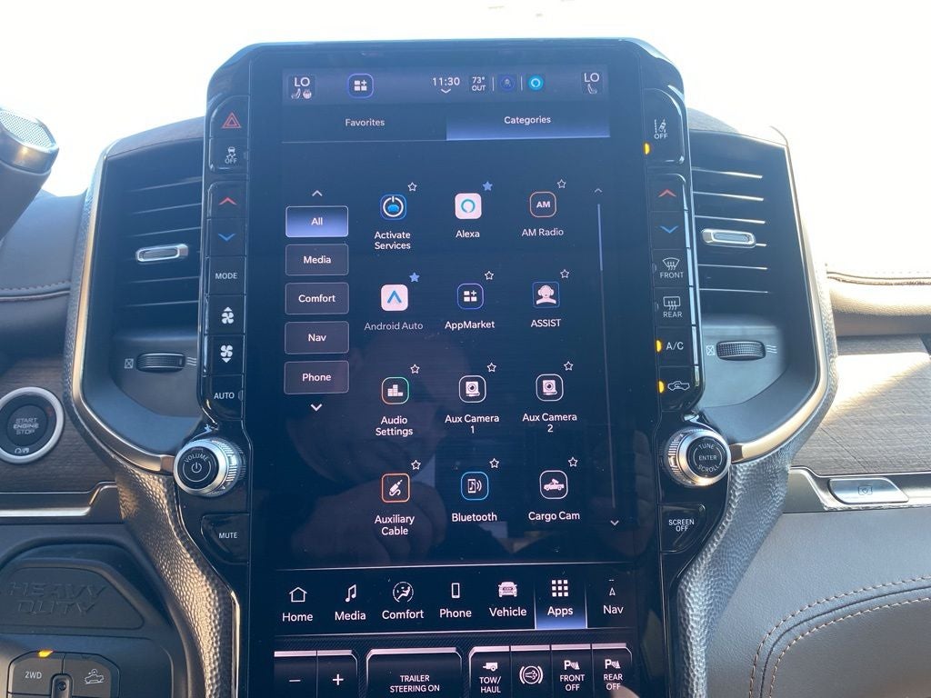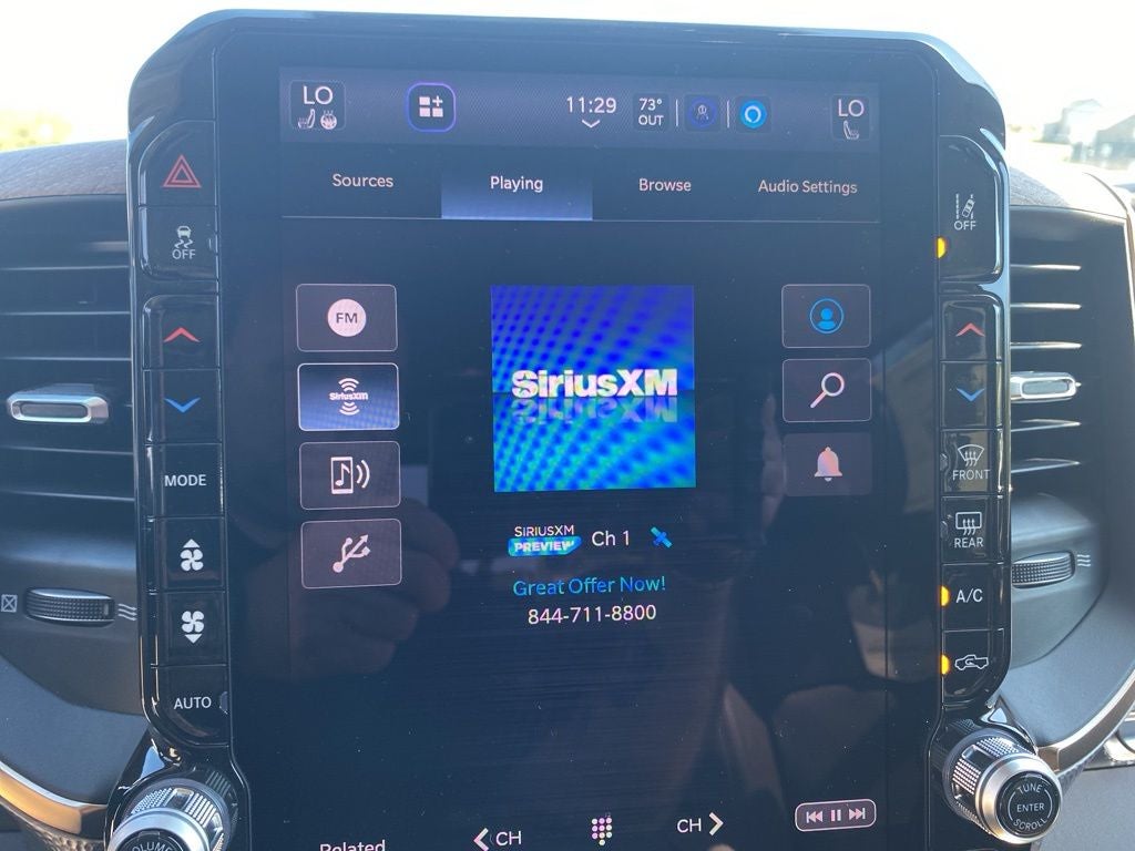 Chrome Bumper Package (Bright Front Bumper and Bright Rear Bumper), Longhorn Level 1 Equipment Group (Active Lane Management System, Adaptive Steering System, Anti-Spin Differential Rear Axle, Center Stop Lamp with Cargo View Camera, Digital Rearview Mirror, Drowsy Driver Detection, LED Bed Lighting, MOPAR Spray in Bedliner, Power Deployable Running Boards, Surround View Camera System, Traffic Sign Recognition, Trailer Reverse Guidance, and Trailer Tire Pressure Monitoring System), Off Road Package (Front Performance Tuned Shock Absorbers, Hill Assist, and Rear Performance Tuned Shock Absorbers), Quick Order Package 24K Longhorn (Front Seat Back Map Pockets, I/P Aluminum Litho Bezels with Real Wood #1, Longhorn Badge, Longhorn Instrument Cluster Theme 3, Luxury Front and Rear Floor Mats, Premium Door Trim Panel, Premium Filigree Leather Seats, Ventilated Front Seats, and Warm Chrome Key Fob), Tow Technology Plus Group (Digital 3.0 Rear View Auto Dimming Mirror and Trailer Reverse Steering Control), 17 Speakers, 4-Wheel Disc Brakes, 5th Wheel/Gooseneck Towing Prep Group, ABS brakes, Adjustable pedals, Air Conditioning, Alloy wheels, AM/FM radio: SiriusXM with 360L, Apple CarPlay/Android Auto, Audio memory, Auto High-beam Headlights, Auto-dimming door mirrors, Auto-dimming Rear-View mirror, Automatic temperature control, Black Wheel Center Hub, Bodyside moldings, Brake assist, Bumpers: body-color, Clearance Lamps, Compass, Delay-off headlights, Driver door bin, Driver vanity mirror, Dual front impact airbags, Dual front side impact airbags, Electronic Stability Control, Front anti-roll bar, Front Bucket Seats, Front Center Armrest w/Storage, Front dual zone A/C, Front fog lights, Front reading lights, Fully automatic headlights, Garage door transmitter, Genuine wood console insert, Genuine wood dashboard insert, Genuine wood door panel insert, harman/kardon® Speakers, Heated door mirrors, Heated front seats, Heated rear seats, Heated steering wheel, Illuminated entry, Leather steering wheel, Low tire pressure warning, Memory seat, Navigation System, Occupant sensing airbag, Outside temperature display, Overhead airbag, Overhead console, Panic alarm, ParkView Rear Back-Up Camera, Passenger door bin, Passenger vanity mirror, Pedal memory, Pickup Box, Power door mirrors, Power driver seat, Power passenger seat, Power steering, Power Sunroof, Power windows, Radio data system, Radio: Uconnect 5 Nav with 14.4 Display, Rain sensing wipers, Rear anti-roll bar, Rear reading lights, Rear seat center armrest, Rear step bumper, Rear window defroster, Remote keyless entry, Security system, Speed control, Split folding rear seat, Steering wheel mounted audio controls, Tachometer, Tilt steering wheel, Traction control, Trip computer, Turn signal indicator mirrors, Ultra Premium Leather Seats, Variably intermittent wipers, Vendor Painted Cargo Box, Vendor Painted Cargo Box Tracking, Ventilated front seats, Voltmeter, and Wheels: 20 x 8.0 Diamond Cut Aluminum with Black Pt Pockets. Price includes: $1000 - 2026 National Bonus Cash . Exp. 02/02/2026