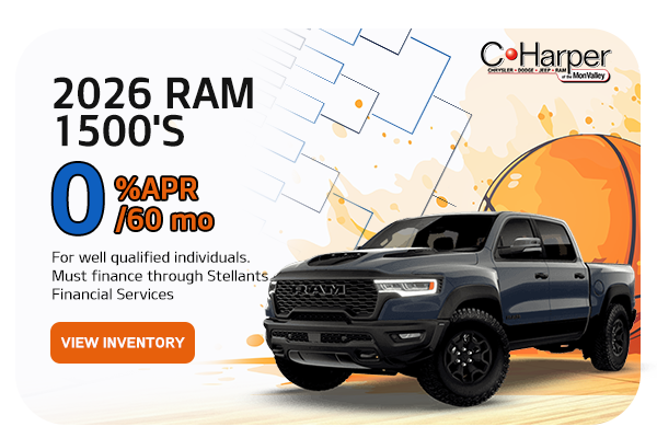 0% APR for 60 months. Based on all 2026 Ram 1500's for well qualified individuals. Must finance through Stellants Financial Services. Not all will qualify. No downpayment required. Not combinable with other offers. Cost per $1,000 is $16.67 for 60 months. Vehicle shown for illustrative purposes only. Multiple available. Sales ends 03/31/2026