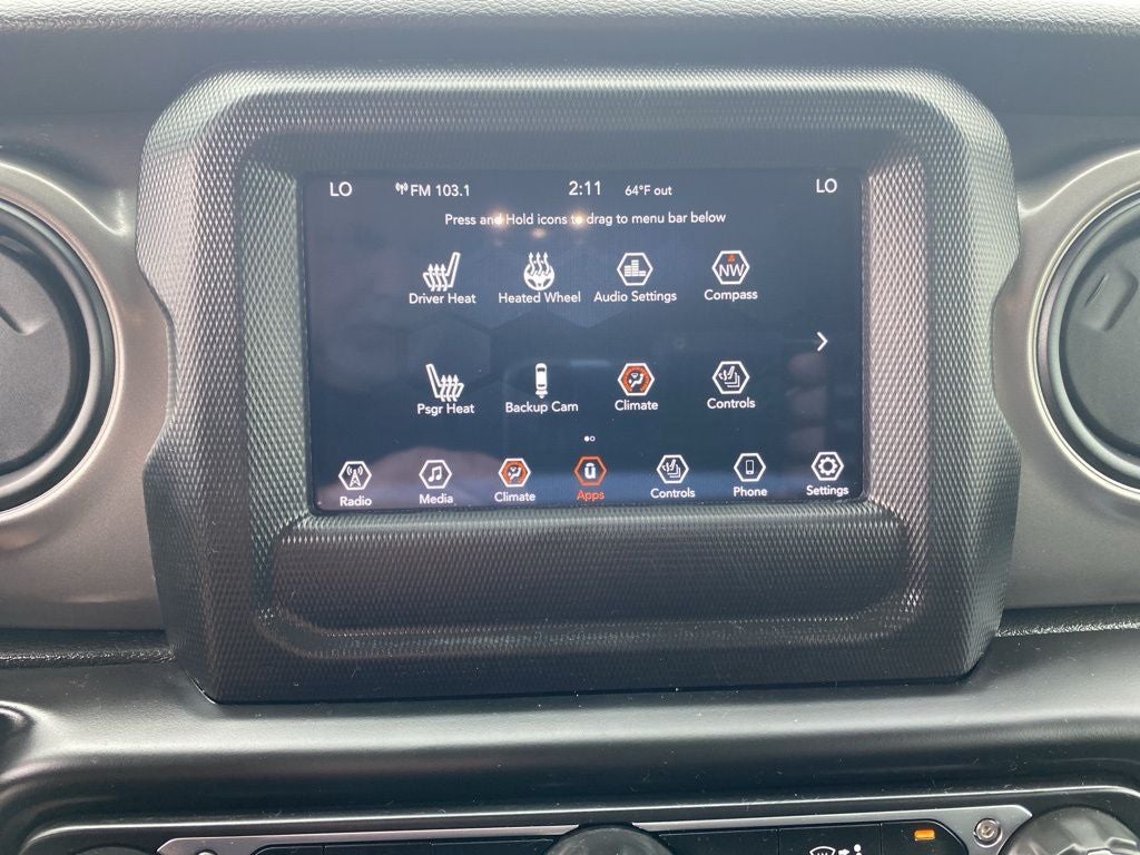 2-Door Passive Entry, Front Door Locks, 3.45 Rear Axle Ratio, 4-Wheel Drive Swing Gate Decal, 97 MPH Vehicle Max Speed Calibration, Air Conditioning w/Auto Temperature Control, Air Filtering, Anti-Spin Differential Rear Axle, Apple CarPlay/Android Auto, Automatic Headlamps, Aux Battery, Black 3-Piece Hard Top, Black Grille, Black Trail Rated Badge, Cluster 7.0 TFT Color Display, Cold Weather Group, Convenience Group, Corning Gorilla Glass, Deep Tint Sunscreen Windows, Emergency communication system: SiriusXM Guardian, Freedom Panel Storage Bag, Front 1-Touch Down Power Windows, Front anti-roll bar, Front LED Fog Lamps, Heated Front Seats, Heated Steering Wheel, Leather Wrapped Steering Wheel, LED Headlamp & Fog Lamp Group, LED Premium Reflector Headlamps, Matte Black Jeep Badge, Mold In Color Bumper w/Gloss Black, MOPAR All-Weather Floor Mats, No Soft Top, Power Heated Mirrors, Quick Order Package 22W Willys, Rear Window Defroster, Rear Window Wiper/Washer, Remote Keyless Entry, Security Alarm, SiriusXM Radio Service, SiriusXM Satellite Radio, Speed Sensitive Power Locks, Stop-Start Dual Battery System, Sun Visors w/Illuminated Vanity Mirrors, Technology Group, Universal Garage Door Opener, Wheels: 17 x 7.5 Moab Black Aluminum, Willys, Willys Hood Decal.